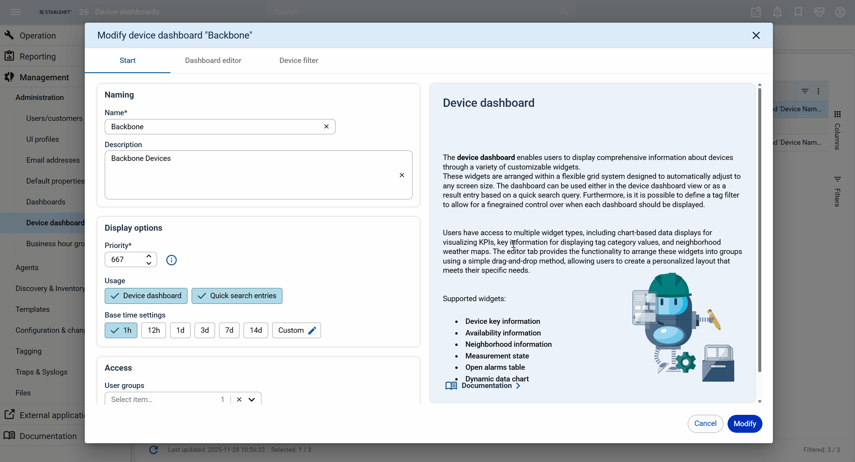 StableNet®’s Dashboard Management is now fully available and heavily improved in the StableNet® Portal, bringing all the functionality previously in the Rich Client into a modern, intuitive interface.