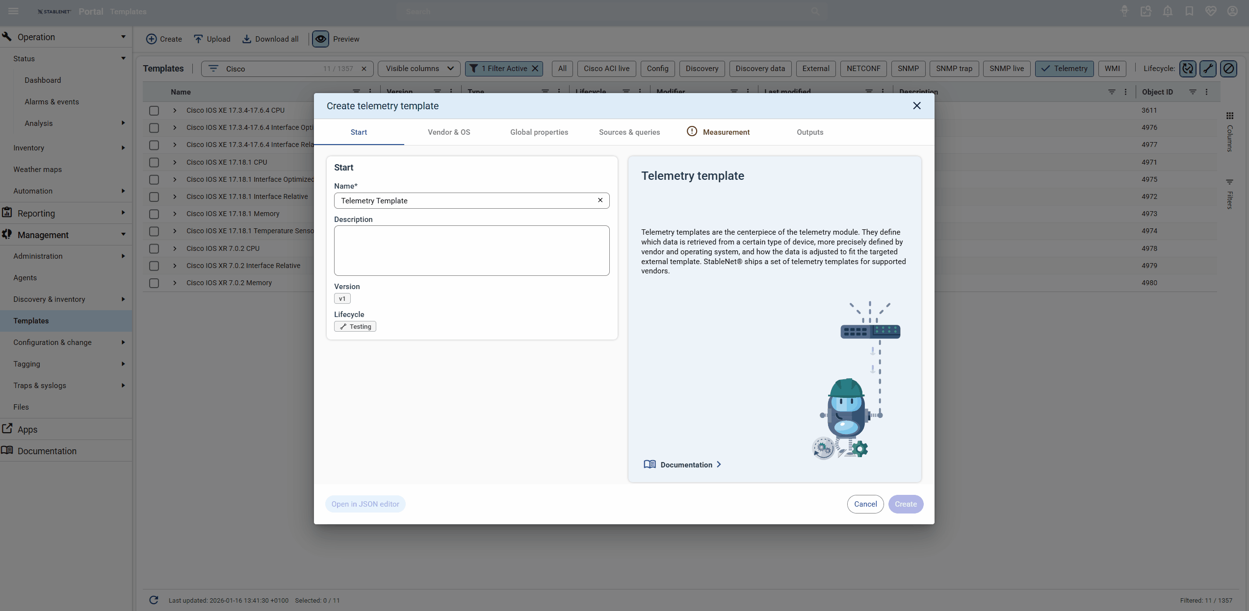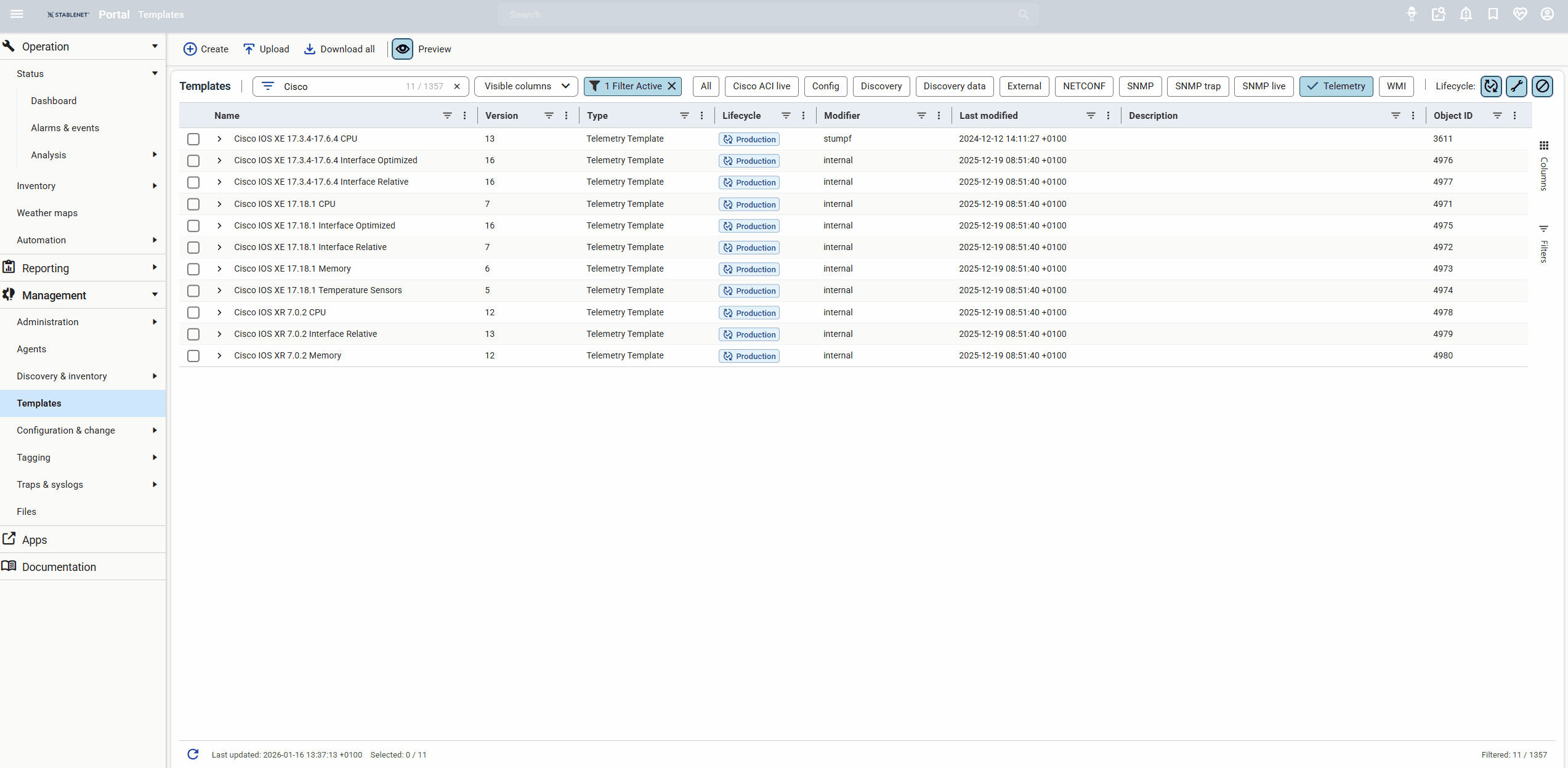 StableNet® now introduces Customizable Device Dashboards, replacing static views with flexible, filter-based layouts per device type. Using a graphical editor, dashboards can be individually designed, enriched with new and improved widgets, and saved as reusable templates. This allows irrelevant measurements to be hidden and only essential data to be displayed. These customizations also enhance the Quick Search experience. This improved functionality leads to faster navigation and more efficient access to relevant information, helping users reach their results quicker and work more effectively.Telemetry Template Editor