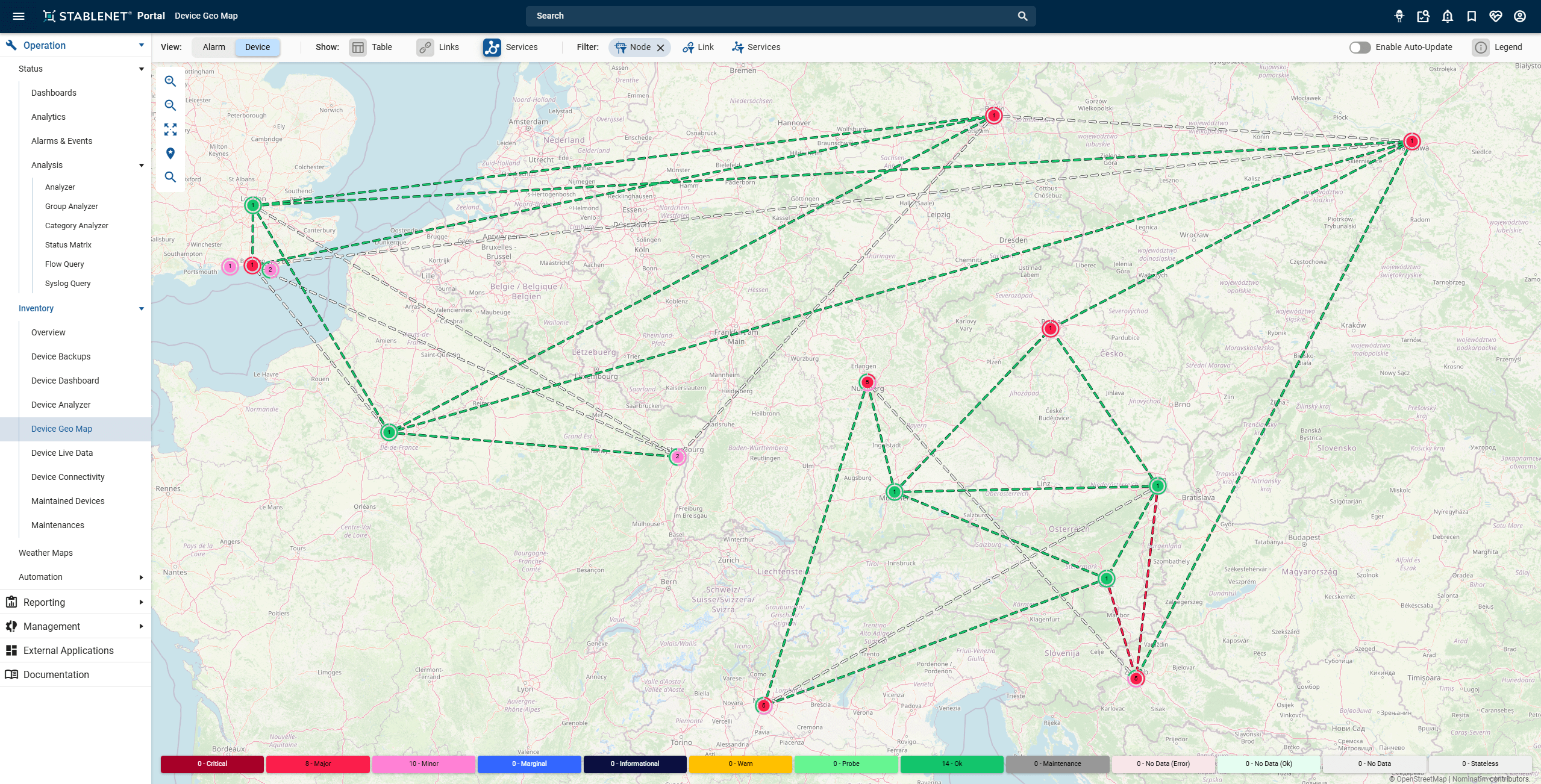 Subway maps, bar charts, and Venn diagrams exemplify the power of information visualization, which dramatically enhances our ability to understand and make decisions from large, abstract data sets. This principle, that “a picture is worth a thousand words,” underscores the value of graphical depictions in cognition and decision-making. For telecommunications companies managing extensive and technologically diverse networks, a unified service visualization tool like StableNet® significantly simplifies the complexity of managing and maintaining network services. By consolidating multiple data sources into dynamic, customizable visual representations, StableNet® provides telcos with a powerful tool to gain insights and manage sprawling networks efficiently.